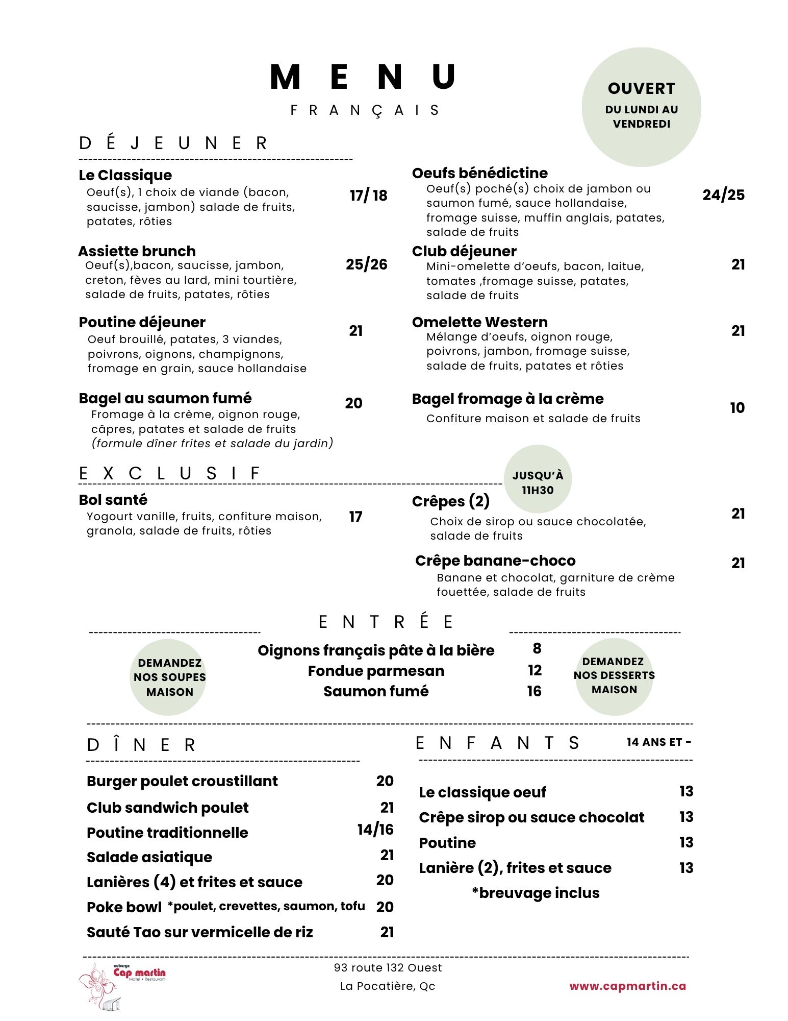 Étant bien positionné sur les bords de l’autoroute 20, notre menu pour enfant et sandwicherie simple et efficace apaise les estomacs pressés de faire de la route.